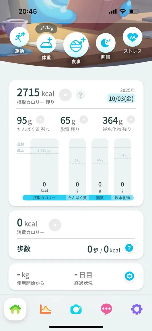 また下部には体重の遷移グラフが表示されているので、例えばダイエットをされている方は、この画面を見てワクワクすることも可能です。
