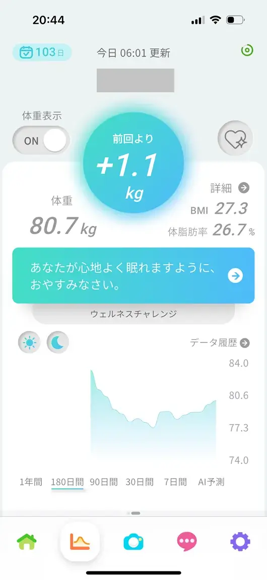 AIが体重の増減を見守り、リバウンドの兆候や目標達成の見込みをお知らせしてくれるんです。