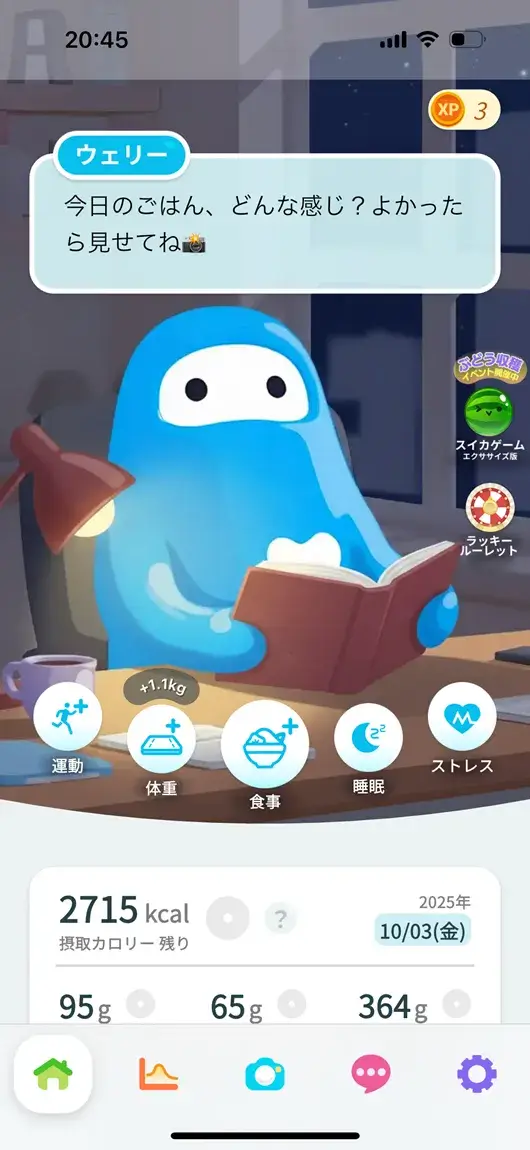 こちらは、アプリのトップ画面なんですが、ウェリーというキャラクターがエスコートしてくれます。