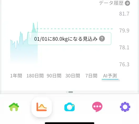 AIが少し先の推定値も算出してくれるので、ダイエットのモチベーション維持にも向いています。