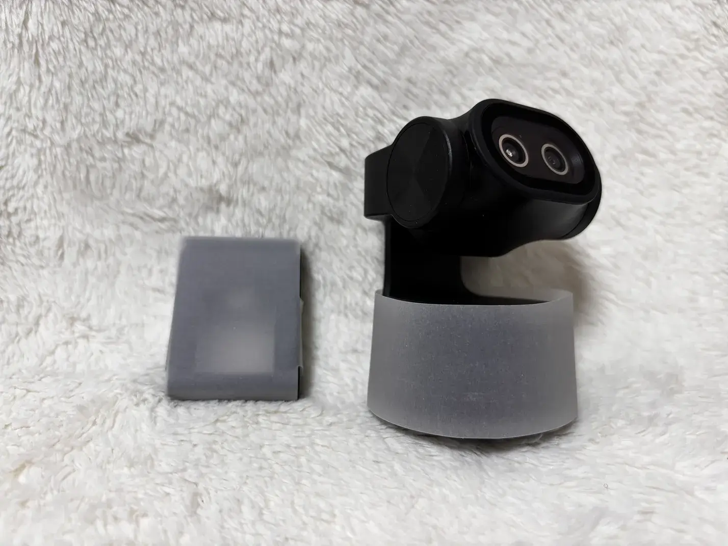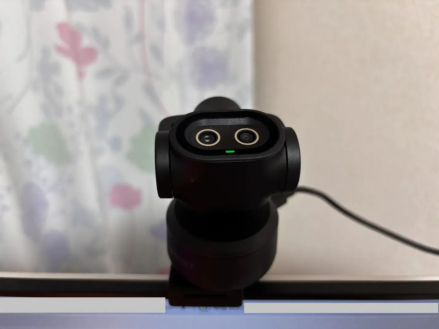 本体が上重心のため、付属台座の固定が甘いとディスプレイ上から落ちやすい。三脚やしっかりしたマウント推奨。