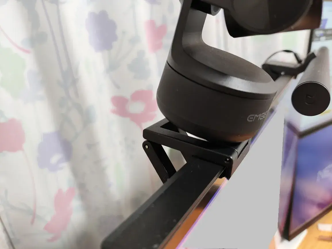こちらがEMEET PIXYウェブカメラを取り付けたところです。