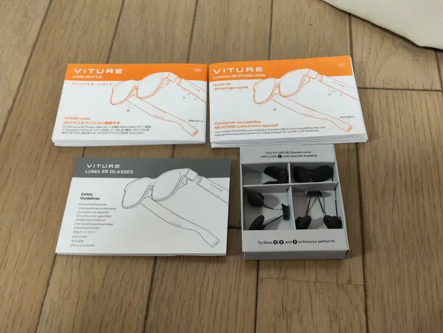 こちらがLuma XRグラスの付属物で、メガネの交換用鼻パッドまであることには驚きました。
