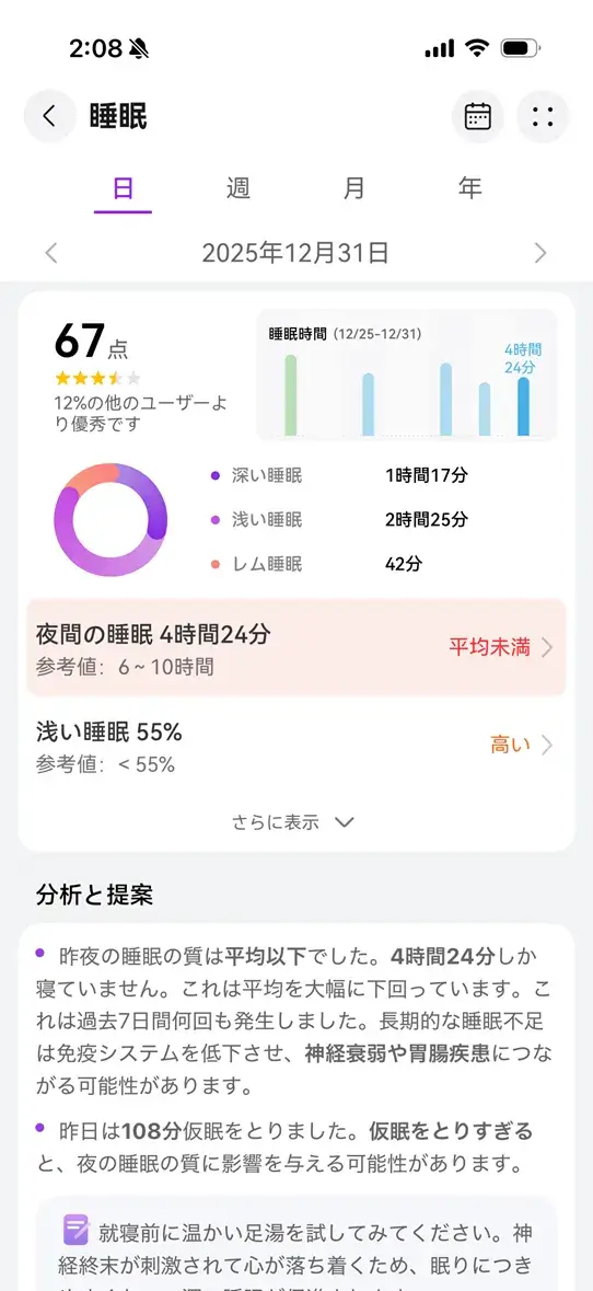 運動量や睡眠の内容をあとから振り返る際にも分かりやすく、数字が苦手な人でも継続しやすい印象があります。