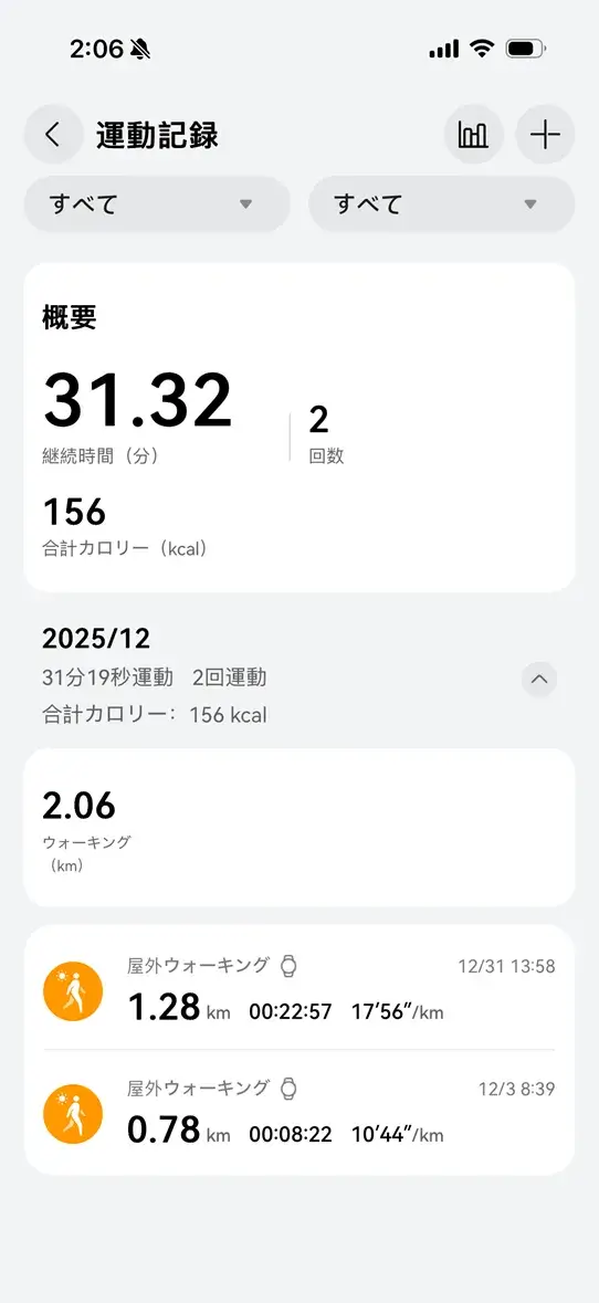 運動データはHUAWEI Healthアプリ内に蓄積され、長期的な履歴として管理できます。