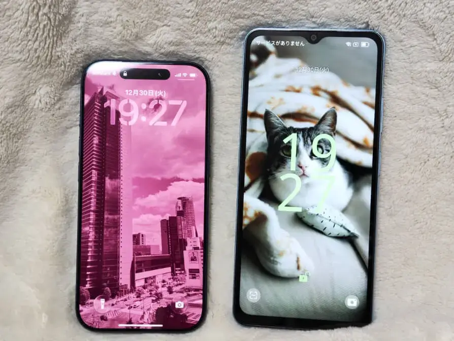 Blackview Wave9CとiPhoneのコントラストの対比ですが、WAVE9Cはかなり良い方だと感じました。