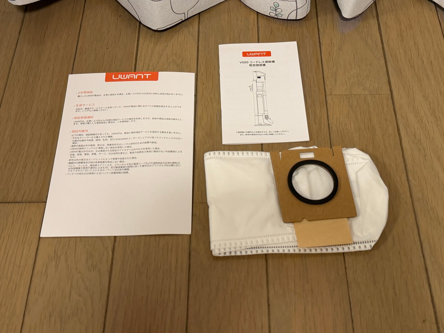 ちなみに、UWANT V500掃除機には交換用のダストパックが一つ付属してきます。