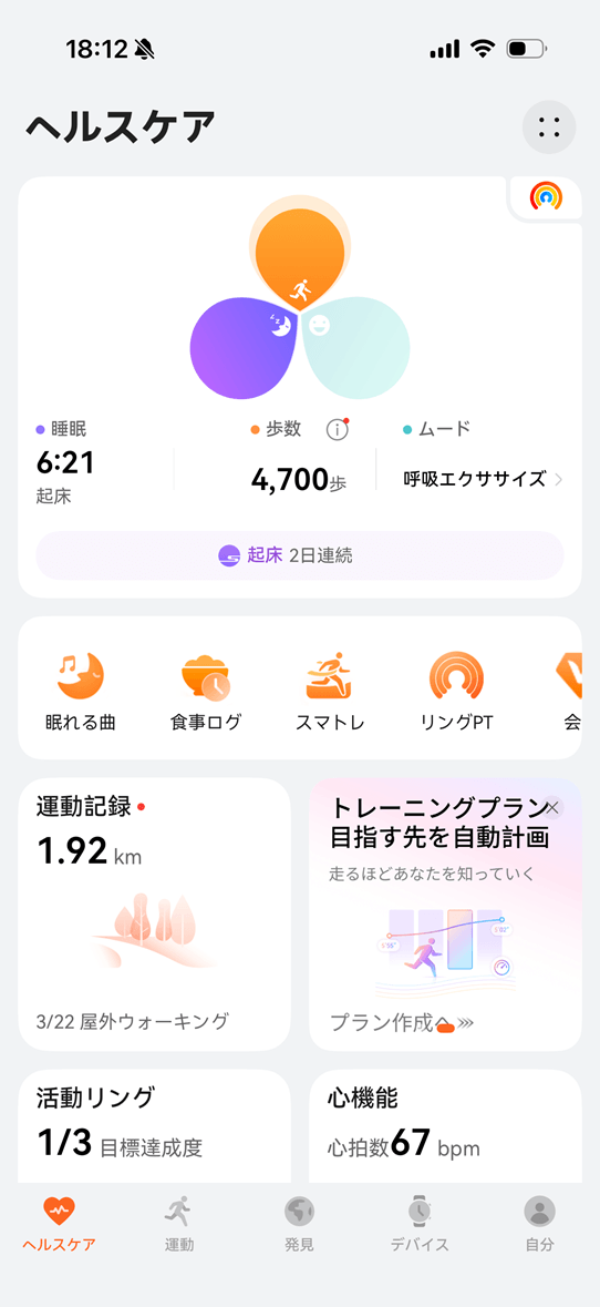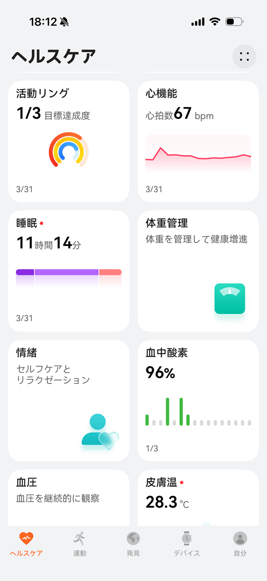 機能面でも、睡眠や心拍数など基本的な健康管理はしっかりカバーされています。