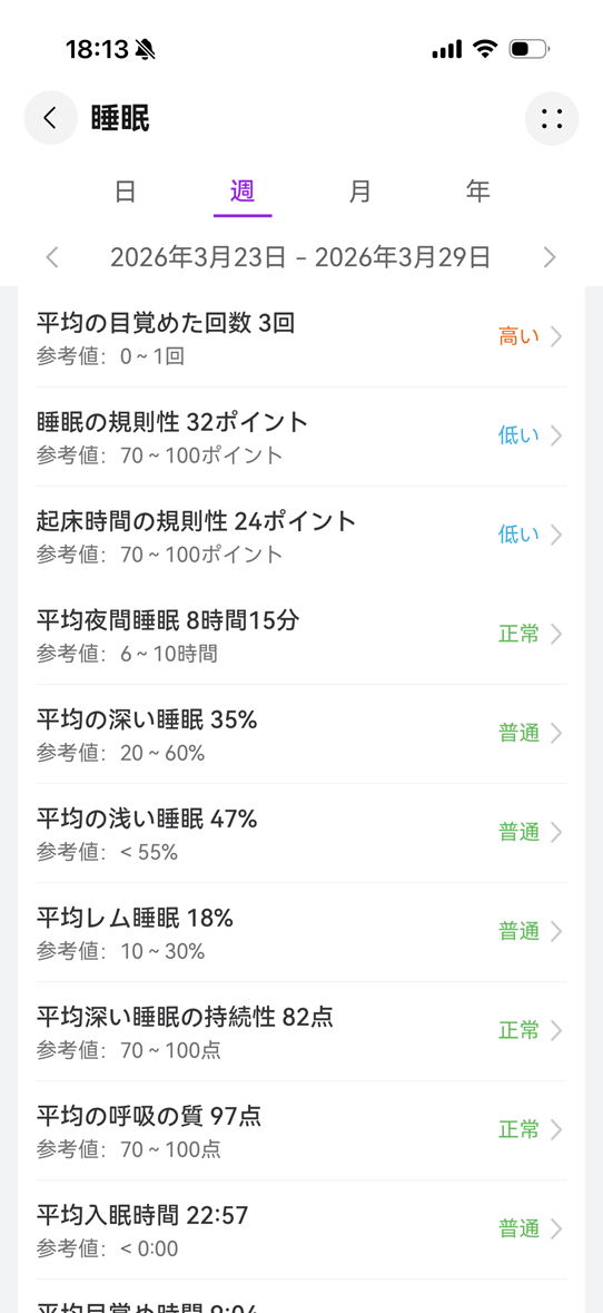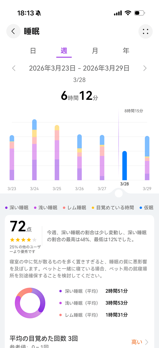 実際の体感とデータが一致する場面も多く、「今日は眠りが浅かった」という感覚が数値で確認できるため、納得感があります。